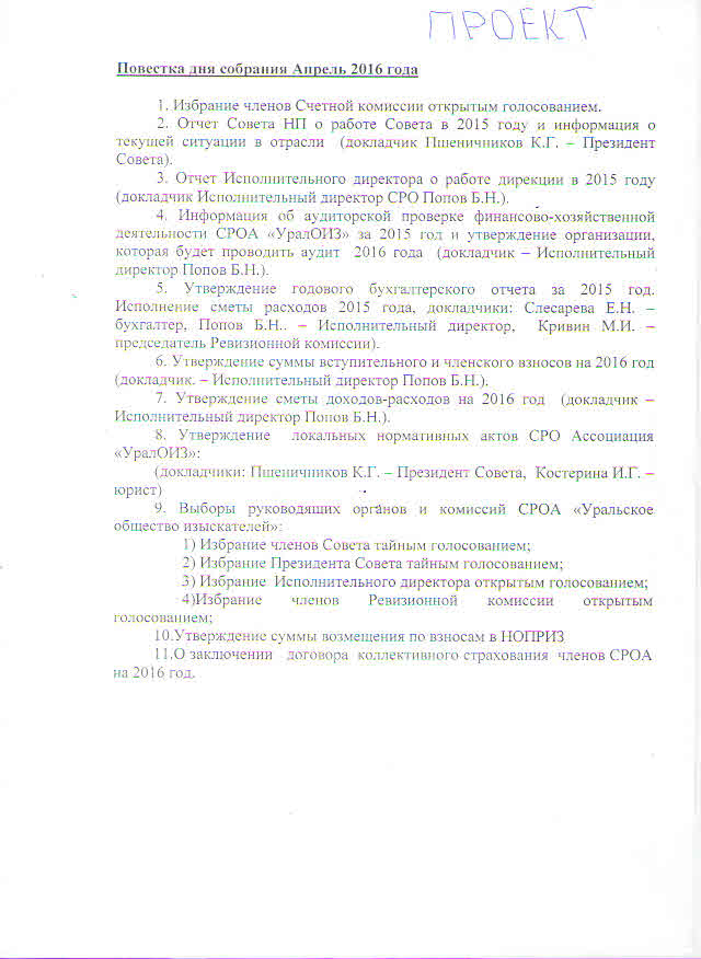 Повестка Общего собрания 7 апреля 2016