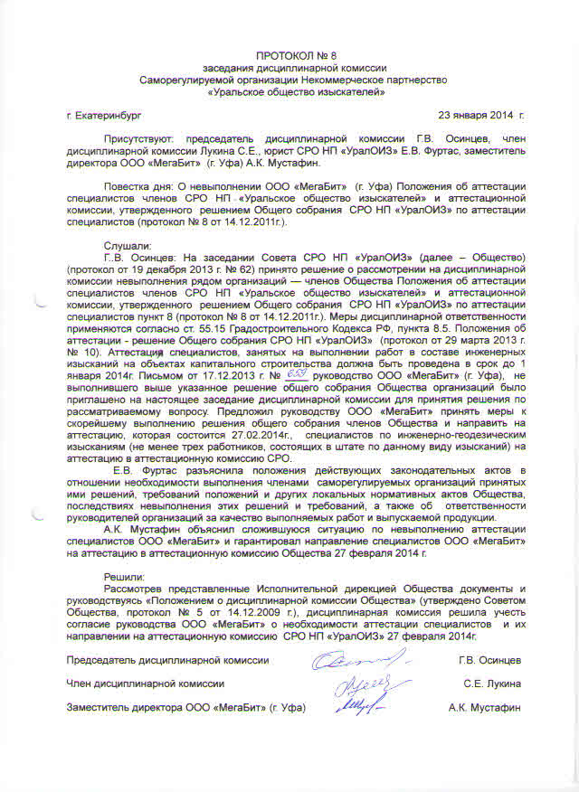 Протокол дисциплинарной комиссии №8 - 2014