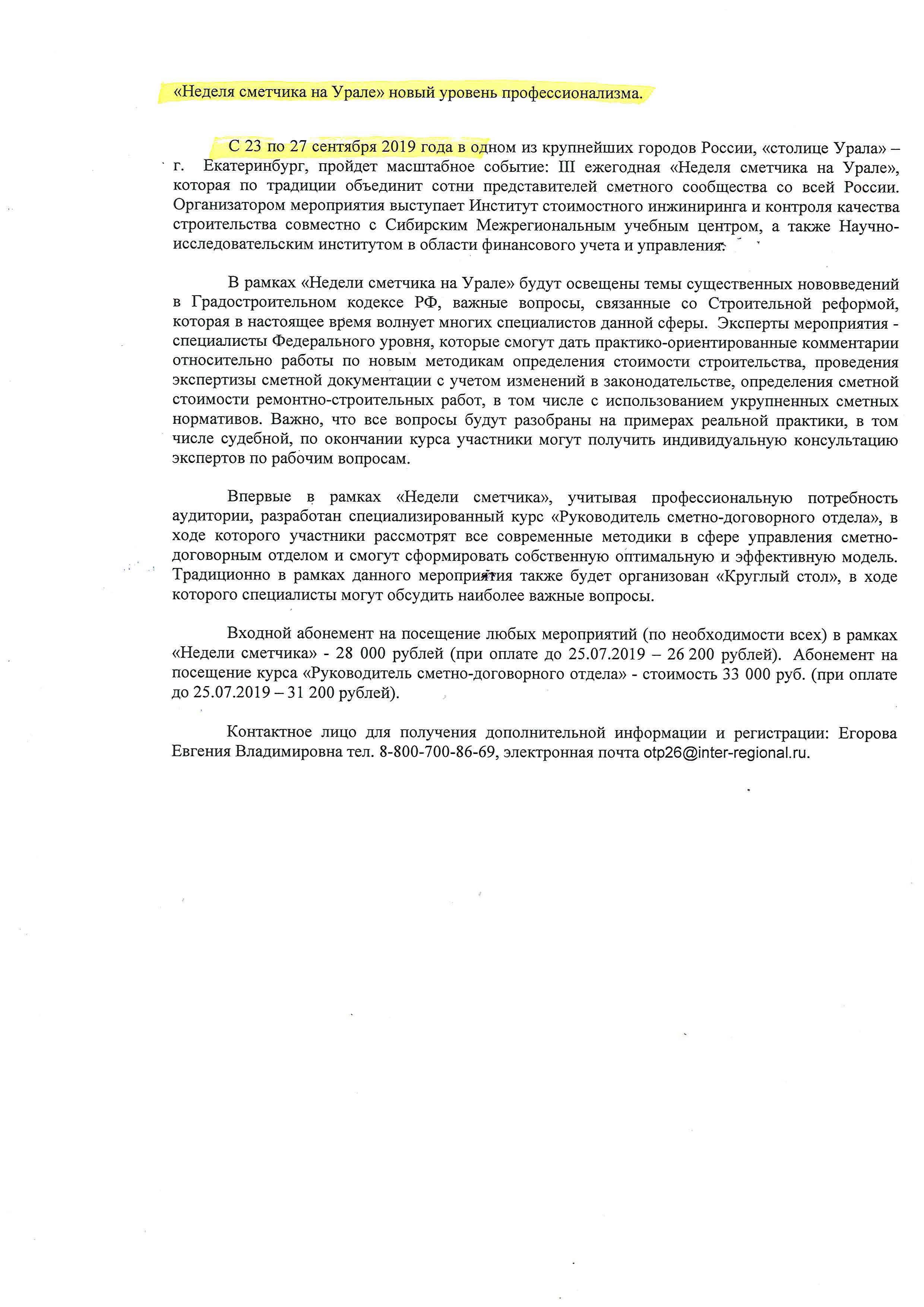 Неделя сметчиков на Урале